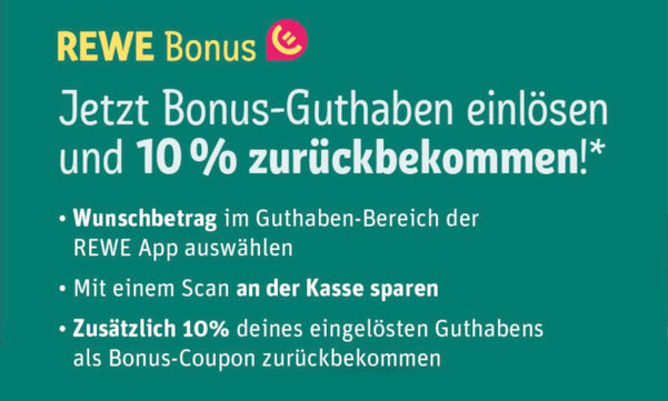 Also: Bonus-Guthaben einlösen, 10 % zurückholen und sich doppelt freuen – wir sehen uns bei uns im Markt! ❤️