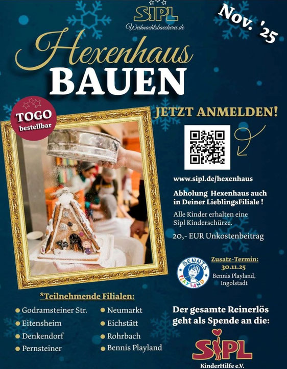 👉 Anmeldung unter www.sipl.de/hexenhaus oder direkt über den QR-Code auf dem Plakat. Lasst uns gemeinsam etwas Wundervolles basteln – und gleichzeitig Gutes tun! 🎅🎁